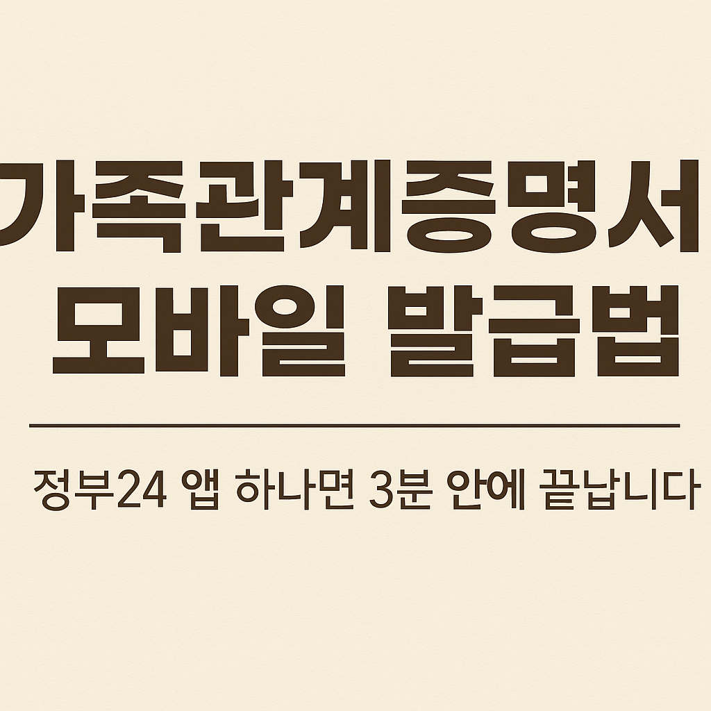 다음은 가족관계증명서를 정부24 앱에서 모바일로 발급받는 절차입니다: