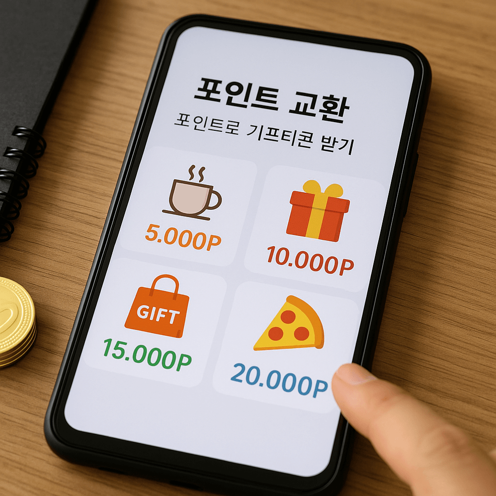 - 단기간 큰 포인트는 어렵지만, 기프티콘 교환 가능